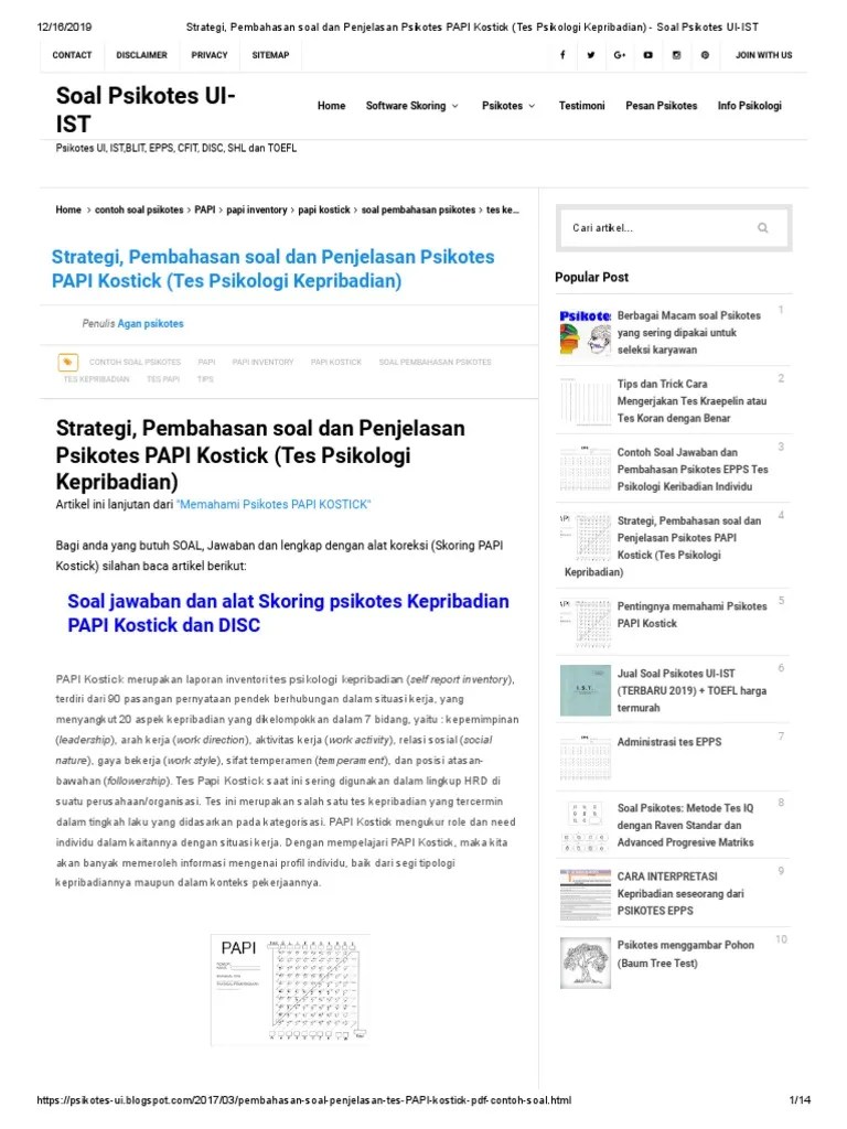 Jun 07, 2015 · wonderlic personnel test (wpt) dibuat pada tahun 1936 oleh eldon f wonderlic, awalnya dirancang untuk membantu dalam seleksi karyawan, juga seleksi pada angkatan bersenjata amerika serikat dan national football league. Alat tes mmpi lengkap dengan skoring mmpi. Bagikanlah lembar jawaban terlebih dahulu, mintalah peserta untuk mengisi identitas dengan benar. Wpt adalah test yang bersifat mandiri. Mar 20, 2020 · soal wpt doc wonderlic personnel test form a mengenai the jawaban soal psikotes wpt contoh soal jawaban soal psikotes wpt contoh soal kumpulan materi pelajaran dan contoh soal 5 contoh soal psikotes wpt tes papi kostick perseptual and preference inventory test kunci jawaban tes ist kunci jawaban soal wpt kunci jawabanku jawaban soal psikotes wpt contoh soal
